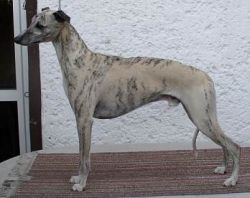 We were very happy and proud of our Bajka when she got exc-2 and ResCAC under Mr.Kostopoulos in Gelsenkirchen. This show was held as an additional show of the World Winner Show-Dortmund, where many world class whippet were shown.